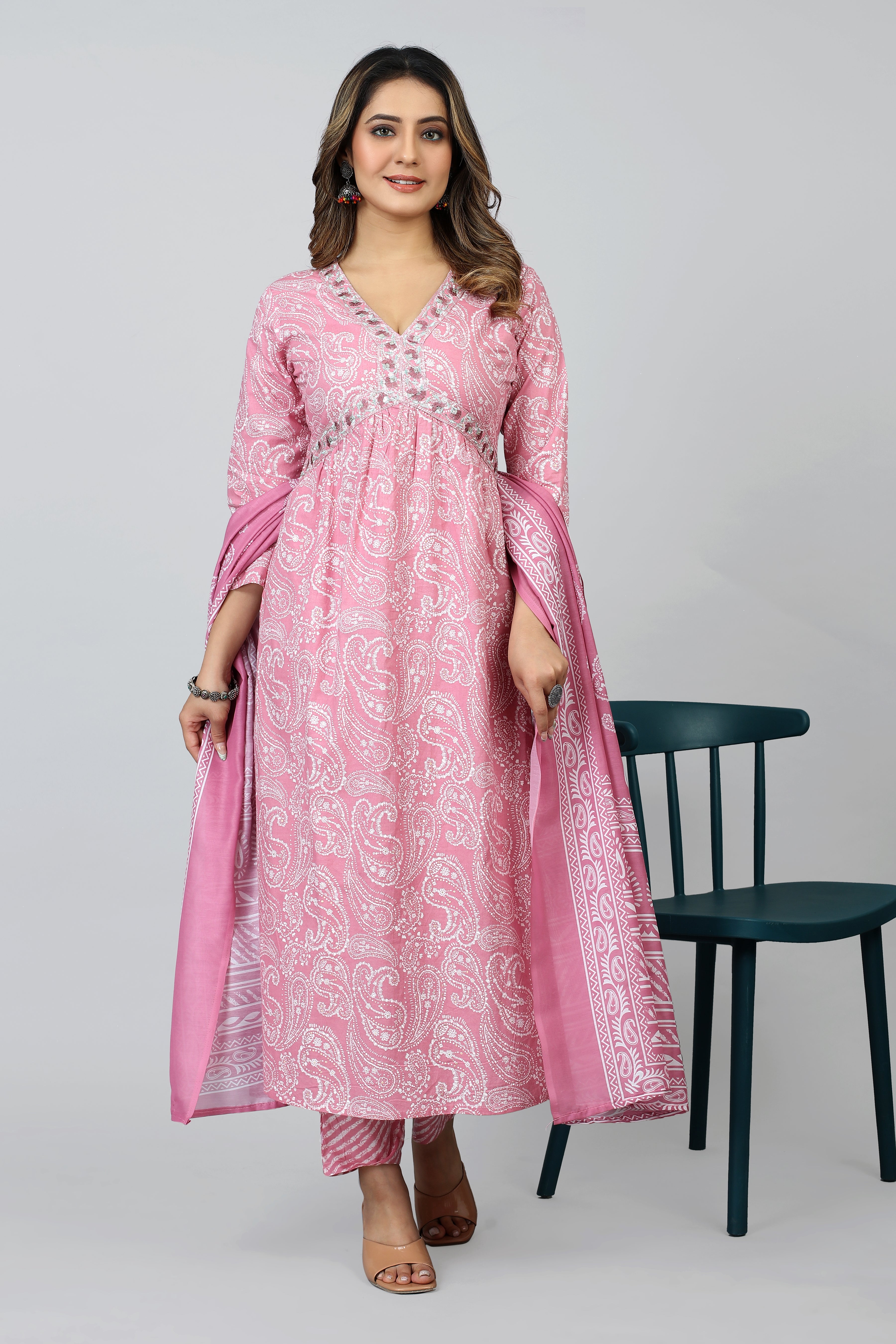 women pink kurta pant set with dupatta Sale priceRs. 1,199.00